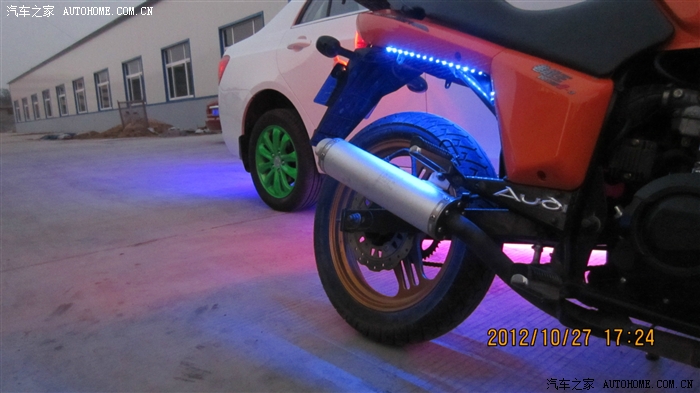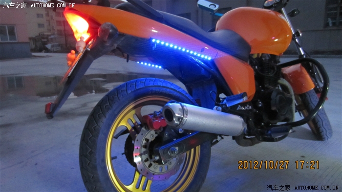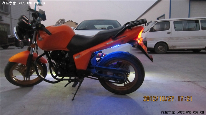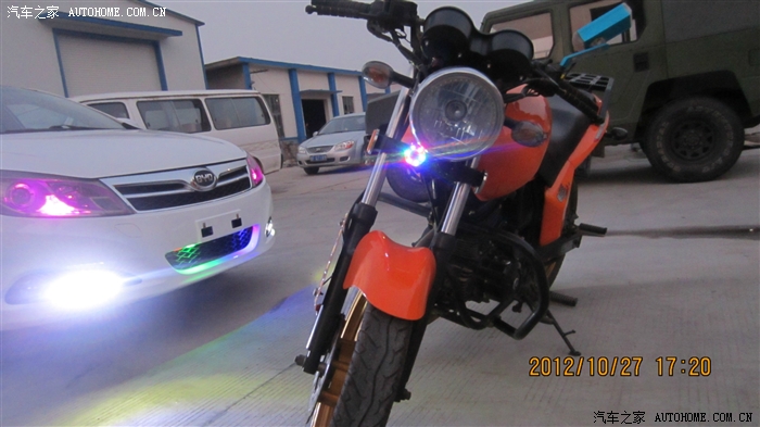 来个合影吧,摩托其实没开大灯,我在大灯碗里加装了一个灯圈,远点看效果不错,类是宝马的天使眼,只是拍的太近了,没拍出效果来