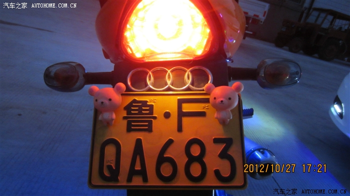 跑马灯我担心放在正前影响美观,而且夜间行车会给对方行人,车辆造成印象,所以我就贴在牌照框下面的内槽里,灯光向下照,既不影响行人车辆,又不影响美观,