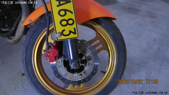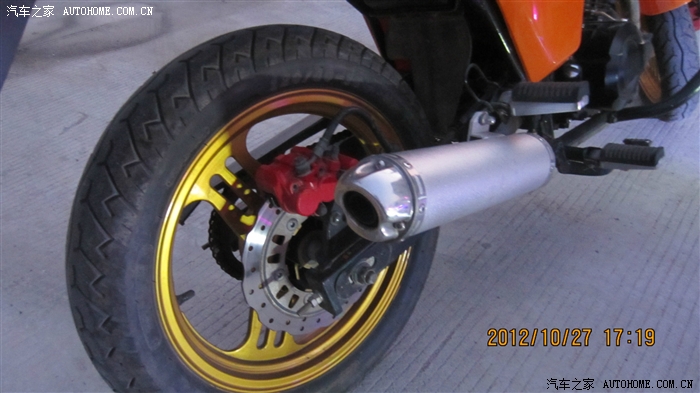 重新喷的金色的轮毂,够个性不? 加装的MP3后视镜,骑车听歌两不误,回头率 。。。。你懂得。。。