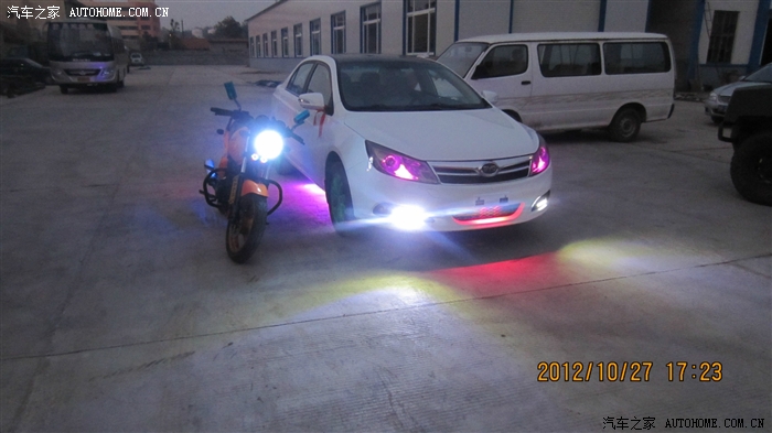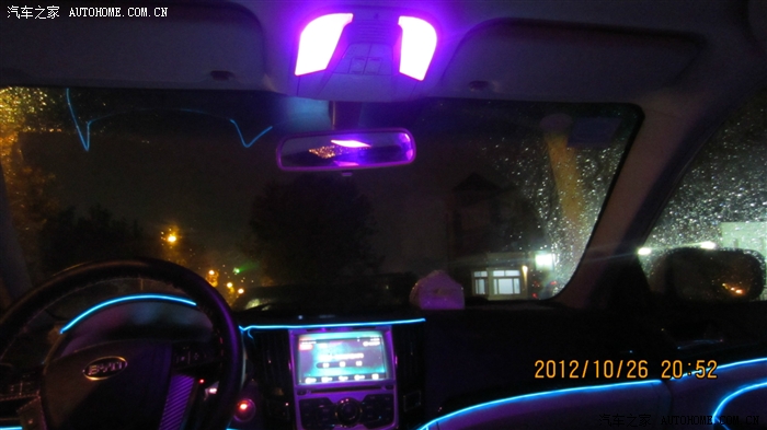 紫色的阅读灯,效果怎么样啊,这是昨天晚上下雨,在学校门口接女朋友的时候照的,我这么耀眼的车停在学校门口,结果,你懂得。。。。