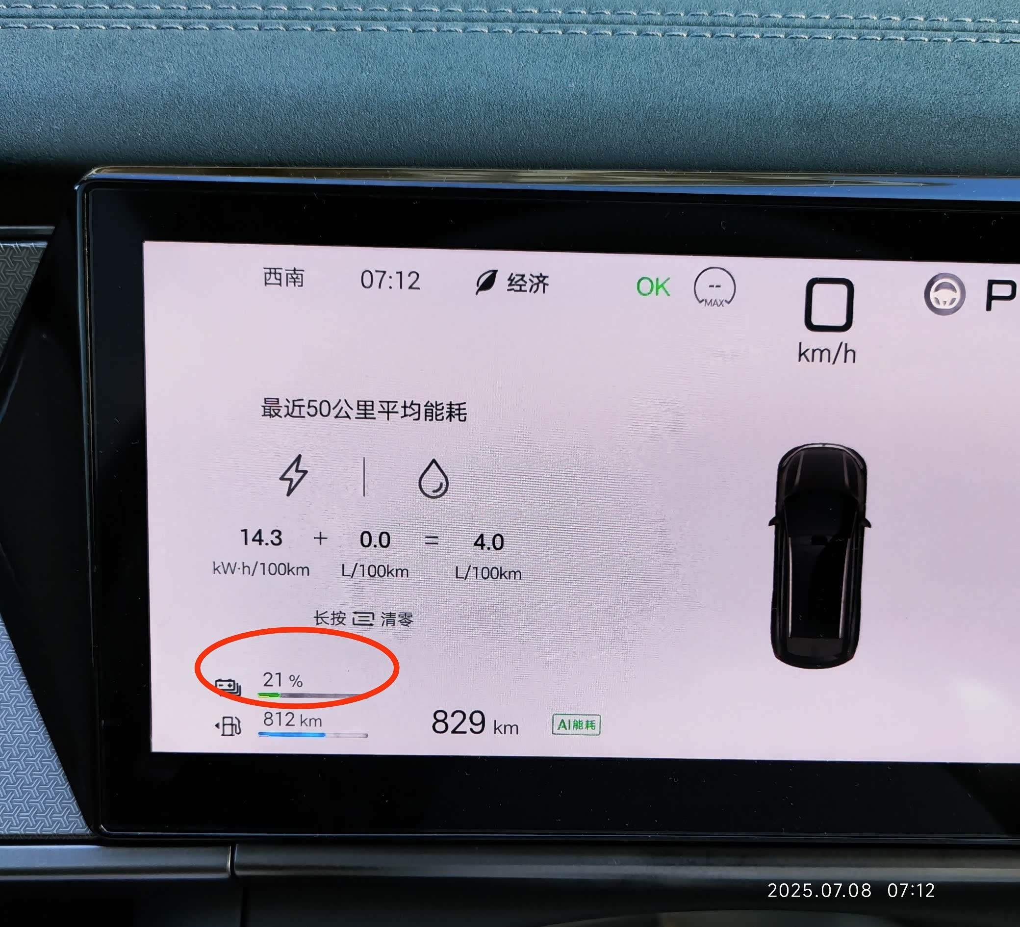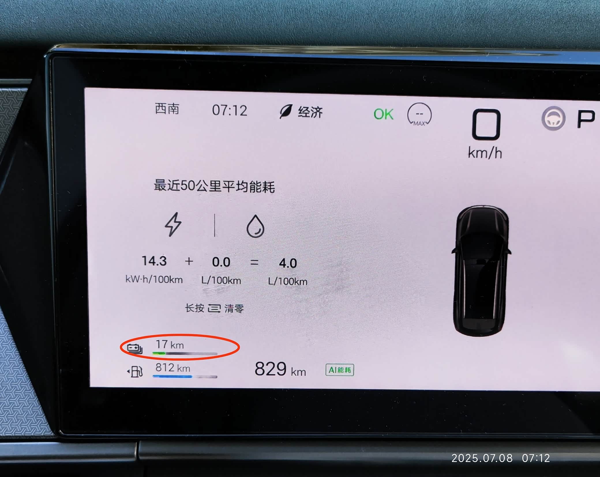 还有一个问题,电量显还剩21%,大概7.5度电,但是切换成续航里程就只剩17km了,按照这个数据算出来能耗是44kwh/100km,难道说这最后的几度电这么不经用?