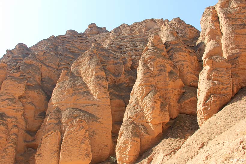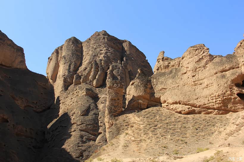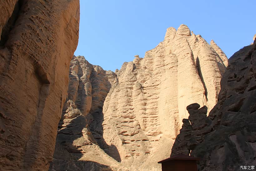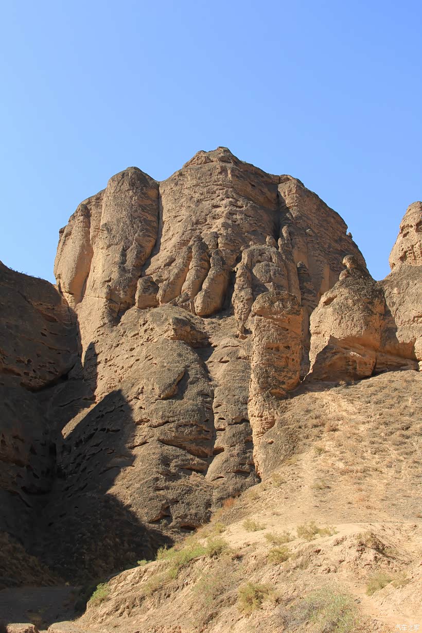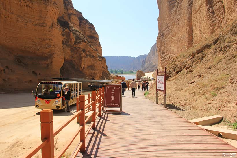 9月14日,星期四,晴。早上6:30从景泰县欣和园大酒店出发去黄河石林。因欣和园大酒店附近没有早餐店,在出县城的途中吃早饭、加油,到达景区已8点多。黄河石林是AAAA级旅游景区,门票40元,70岁以上免票。我们买68元的景区交通车票,进入景区(如坐船再加20元,所看景点和坐车一样,我们放弃坐船),先是乘景区大巴车下到山下,参观地质地貌博物馆,再乘电瓶车到龙湾村。这里山水环抱,环境幽静,风景秀丽。在换乘站下车后需步行800多米,穿过村子到游船码头(买船票的从这里上船),然后沿黄河边道路西行,到下一个换乘站,从这里再乘坐电瓶车到饮马大峡谷。这里也是游船码头,从上一个码头坐船的游客,在这里下船和乘车来的游客一起换乘进山的观光车,进山看石林。