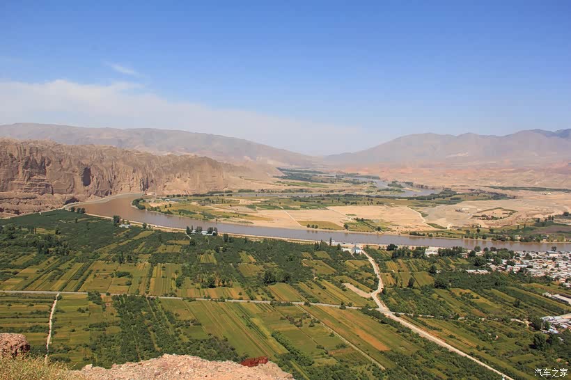 回到停车场后,把在换乘点买的当地产的大枣、苹果放到车上,然后到不远处的观景台登临远望,但见黄河、村庄、峰林、沙漠、戈壁、绿洲等多种资源巧妙结合在一起,山水相依,动静结合,错落有致,美不胜收。