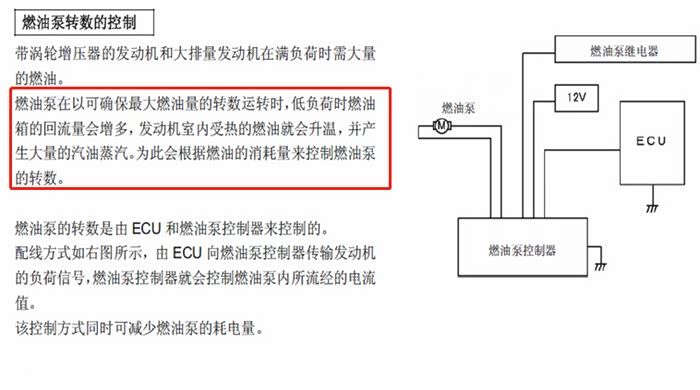 我的观点:故障原因是因为厂家程序设计不当引起的,希望厂家把程序在改进一下,让燃油泵能率随着负荷的加大而改变,当然了这是我个人的观点,正确与不正确还需要厂家给予证实。