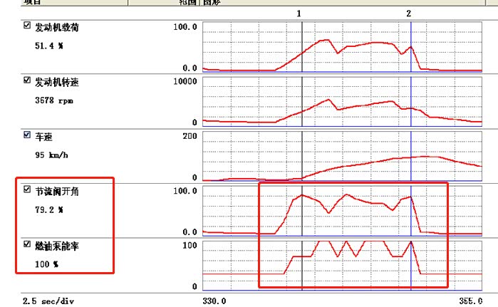 16、下面是驰鹏3.6的数据,燃油泵能率也是随着油门的变化而变化