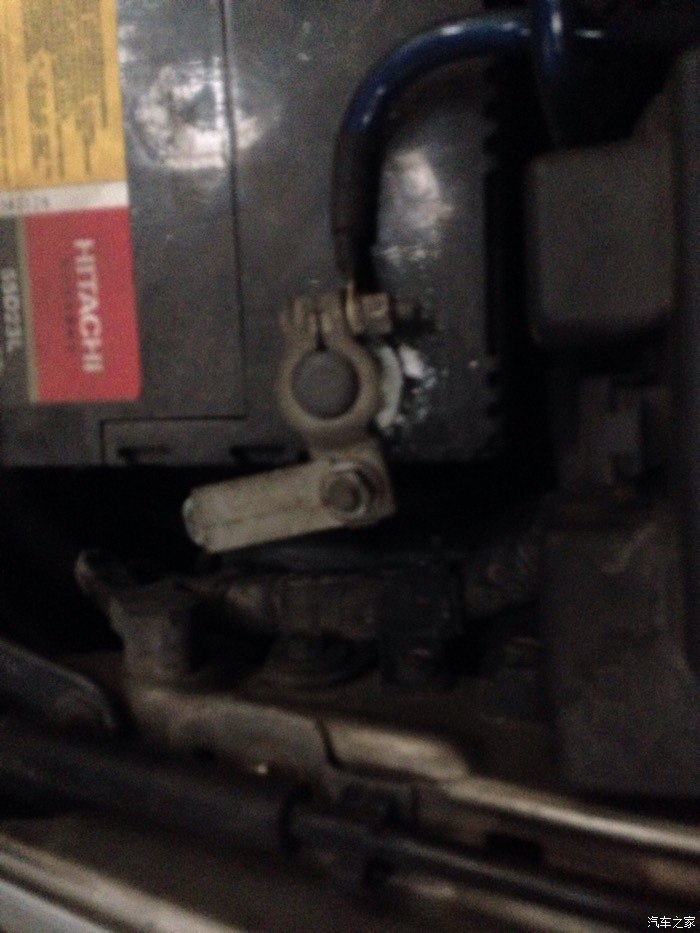 今天打开引擎,看到电瓶负极有白色的东西,粉墨状了,吹了一下,少了一些,,怎么回事,