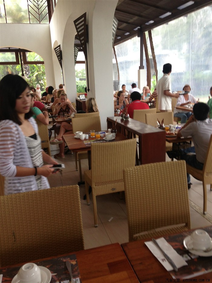 原订7点20来接,三下五除二,吃完早餐,回到大厅等车,执行力,是需要强大的时间观念来做基础的!我们做到了...出门在外,绝不给国人丢脸不守时...但尼玛你迟到20分钟就算了...开车出去一会又把我们送回来,告诉我们PP岛今天不适合游玩...大风大雨...只有回房接着(~﹃~)~zZ......