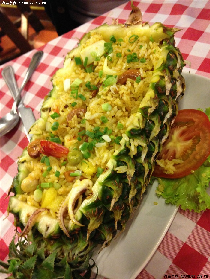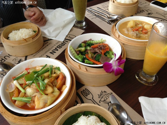 芒果汁好喝...咖喱鸡,菠萝虾,牛肉炒花菜,大概就这种,对了,这家有中文菜谱!一共大概960泰铢...付了1000,剩余40当小费留下了!
