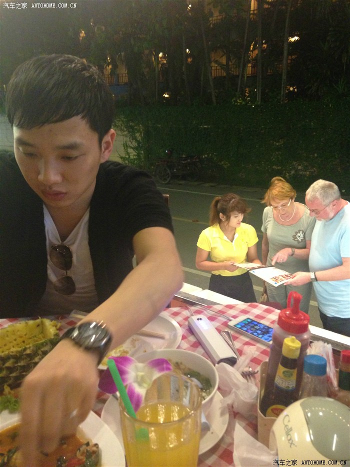 大家看,这照片虽然很模糊,路段还可以,但是这哥们路窄和山路都跑到140以上了的!我在前排,心里和嘴里一直说这哥们是车手吧,平时哥开车就是比较猛,比较快的人,赶脚瞬间弱爆了...而且我觉得应该是市区的道路吧,红绿灯直接120过...我勒个去...(右舵左行)但这哥们挺幽默的,车上音乐放的泰曲,类似最炫民族风的感觉,还挺不错的,过了会直接给放美女的嗨歌嗨舞...和我们简单的交流聊天...