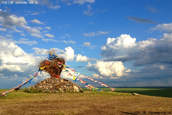 花了50元,收买了一个牧民大姐,开门让我们把车开到了山上,过了一把草地上开车撒欢的瘾,也见到了传说中的敖包。