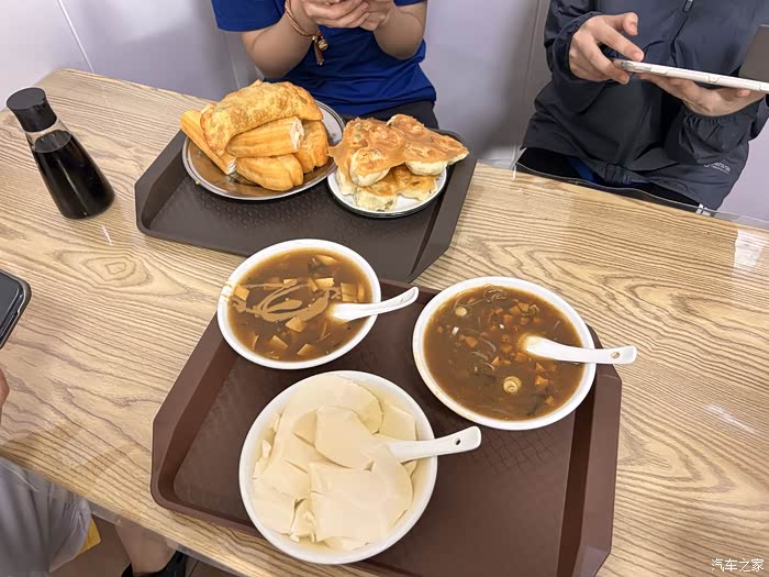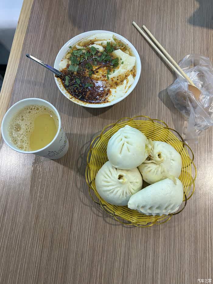 早餐是一家老字号,在胖东来对面,有胡辣汤,豆腐脑,现做的煎包,味道非常好。出来就是尝尝新鲜的。