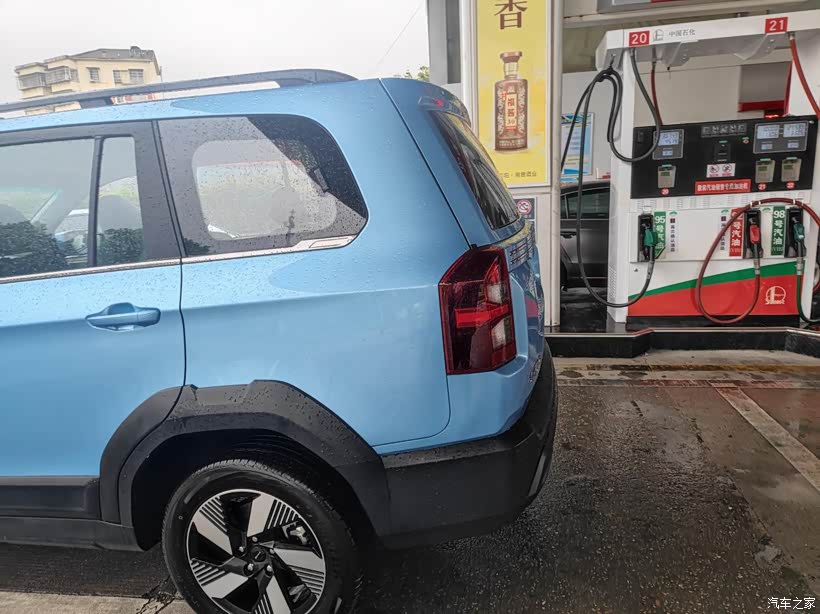 出城的时候有个加油站,正好加一点油,增程式就是这一点很好,想走就走,到处都有加油站可以加油。