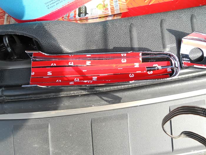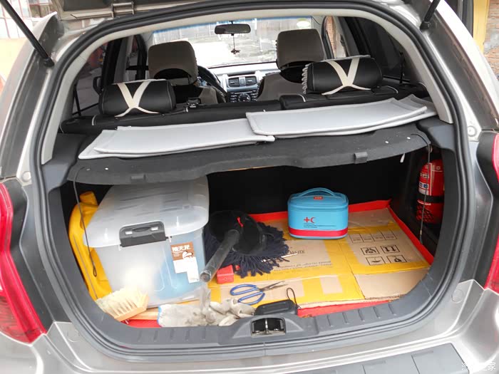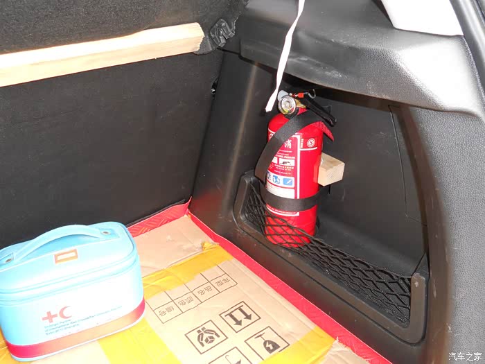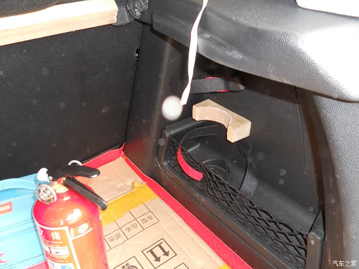 8、自己动手加固了后备箱隔板的强度以及给灭火器加装固定座。