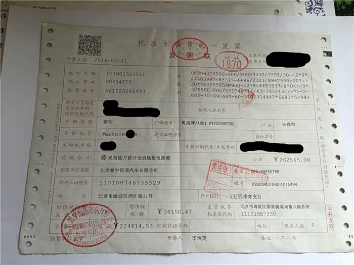 选车没啥纠结的,日韩车不喜欢!(日韩系车友勿喷,谢谢)当时就看中了迈腾旅行版,真心喜欢啊!那会全办完只要27万多一点。但是当时苦于没有北京小客车指标,就和大迈旅擦肩而过!后来指标有了,大迈旅北京没有车了。新款大迈旅上市,一打听价钱果断放弃!只能改定一汽大众迈腾2.0T尊贵版(开罗金,咖啡内饰)。找的熟人简单一谈价钱,交定金就等车了(订车细节价钱就不写了)。。。。等了一个月左右媳妇让我给销售打过两次电话问什么时间来车,回复是近期还没到车。