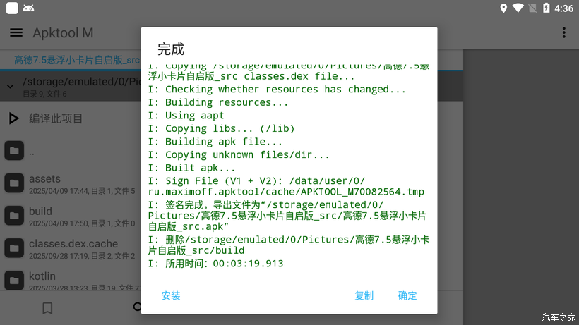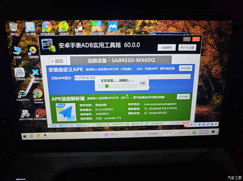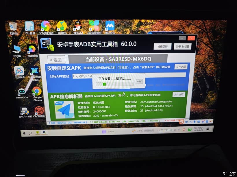 升级的方法就不多说了(论坛里找找,和升级其他版本的方法一样。),要稍微有点动手能力。在笔记本上使用ADB工具,把车载的原有高德先备份一份再卸载掉,然后安装8.5的高德。