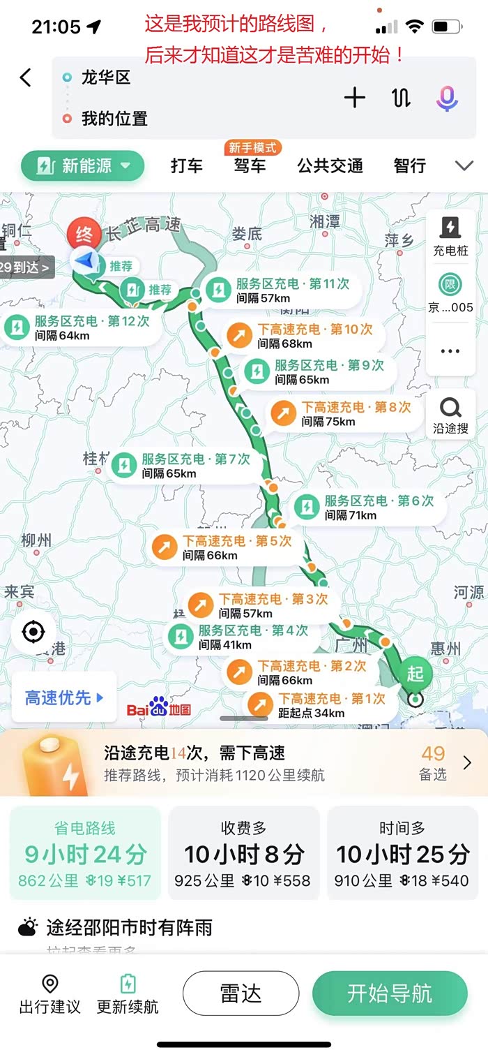 家里已经有了2台车了,油价越来越贵,本想着老婆接送小孩,买一台新能源车在市区里开开也挺划算的,头脑一热就从深圳龙岗网上定了台众泰e200,160km续航,2016年9月的车,改色,1.6万过完户都花了1.7万。晚上坐高铁去的深圳车费我出的,车主出钱给我开了一家宾馆,档次算一般吧。第二天大清早就去过户,过户费我出的。我在淘宝找了黄牛420过户费不用预约,到了中午才搞完,我带着手续和卖家吃了一顿饭,不合口味,不咋地。当天中午自己傻得还没有去想如何回来,只想着高速可以充电顶多花10多个小时边充电边玩着回来,哪知道更大的问题在后面等着我,差点我吧车扔在路上不要了。总的来说:有可能是我上辈子做好大好事或者是我有大运气,在路上遇到了很多很多的麻烦,也遇到了很多热心人。这世道起码好人多,也感谢蓝山县的修车店老板娘,冒着大雨感谢你给我充电,虽然直充了1%,也给我了很大的帮助,我在离家还有300多公里的时候,那时候我已经连续开车30多个小时了,我在高速上80码的速度睡了5-10秒,吓得我原地飞升。