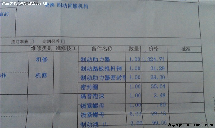 维修清单的备件及价格最后还有一件小礼物。有点惊喜哦!整个更换需要3个小时。