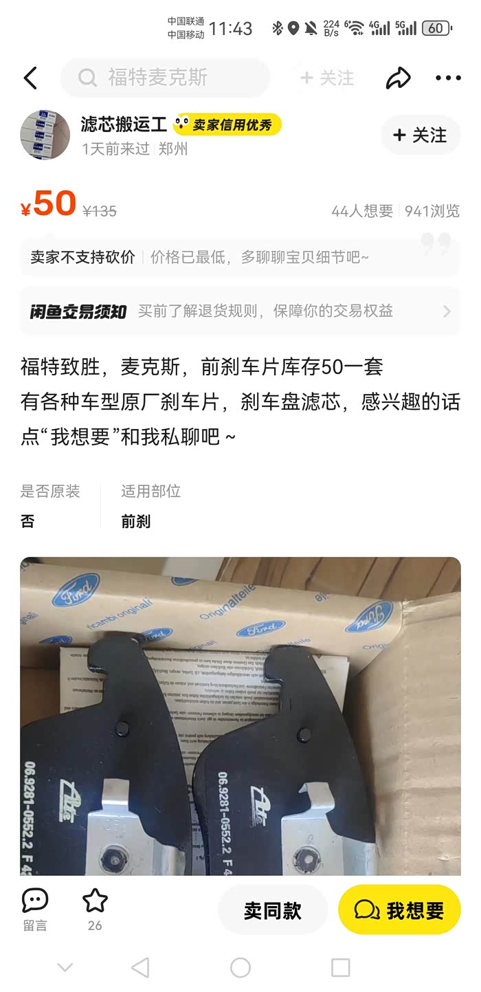 后刹车盘磨损到位了,直接换后刹车盘和刹车片,4S收我1152 我感觉是不是比外面贵了很多,另外发动机盖有点渗油,4S小哥说时间长了正常,我还是直接换了新的一套气门室盖垫,和机械真空泵垫,又花了1000+。