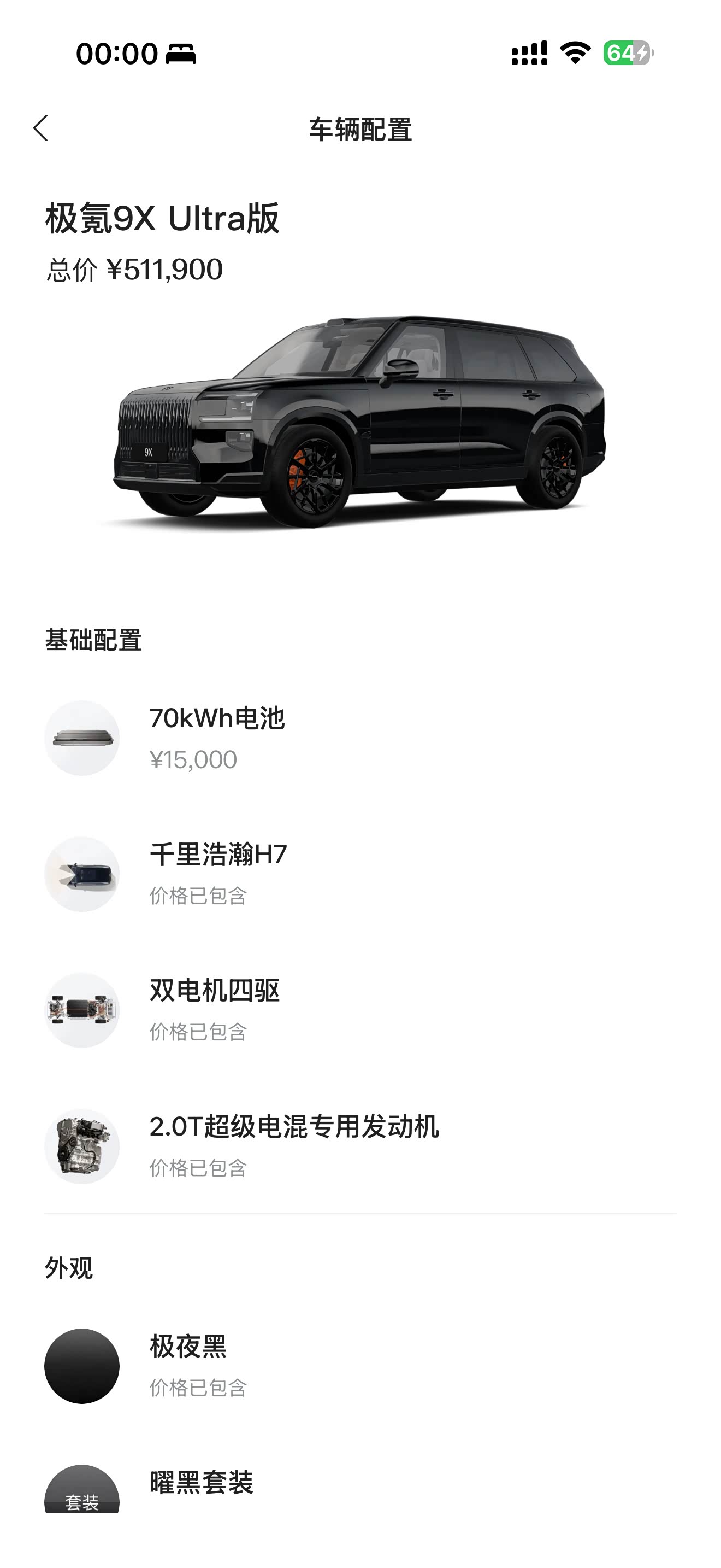 9.30当天下的大定,跟销售员讨论半天。还是决定订Ultra版,说是顶配可能交车比较迟。选了大电池、座椅转向和耀黑套装,果断取消了连屏和48V稳定杆。太明智了,果然,顶配车几乎都要等4-6个月。然后约了第二天晚上,也就是10.1晚上去试驾,整体感觉还不错,当晚就锁单了,估计10月底就能提车了吧。