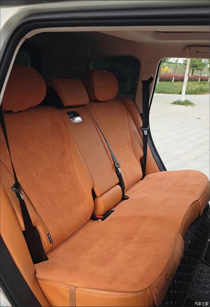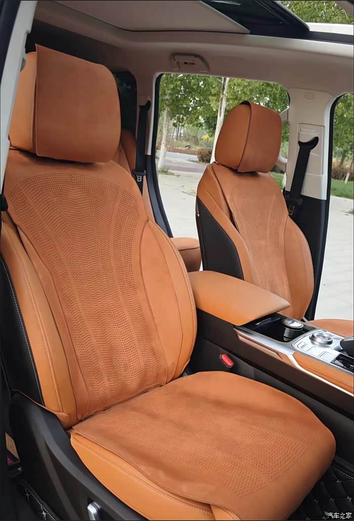 因为这个车我选的是棕色内饰,没有那么耐脏,并且带有座椅加热和通风功能,为了不影响座椅通风及美观性,我爱人在网上选择了这款翻毛皮带打孔的坐垫套,怎么样,很有品味吧
