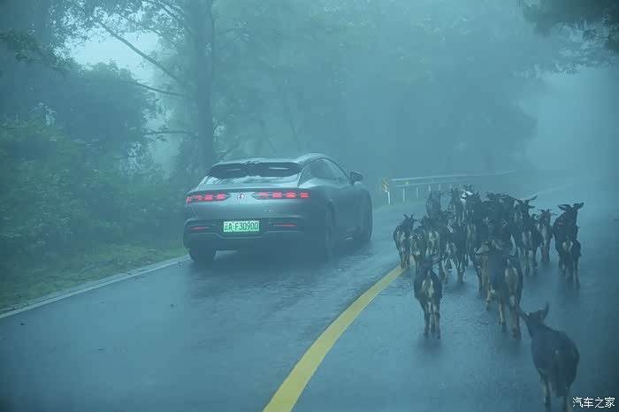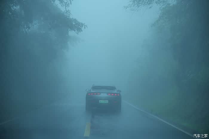 体会下这种氛围。伸手不见五指哈哈,前面的Z9GT十来米,已经看不清尾灯了。
