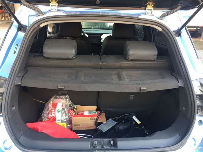 我家小易是酷跑款,起步时加速很快,特意看了一下,电机最大功率是35kW,最大扭矩是150N?m,动力上是很充沛的。整车外观小巧靓丽,轮廓上前低后高、动感十足;大灯是远近光一体同时搭配LED日间行车灯,这个价位能搭配LED日间行车灯是我当时考虑这款车的因子之一:国人的LED情节。内饰简洁大方,座椅配置了合成皮座椅,看起来不Low,坐上去感觉也不错,腰部有一定的支撑感,在座椅刚性上稍有欠缺;第二排座椅可以整体放倒,虽然很少用到,但是托运大件物品时必不可少。我家小易配备了HUD、8英寸触控屏、上坡辅助、胎压监测,配置上基本上考虑了实际用途。值得一提的是音响效果,车内一共有5个扬声器,音响效果比上不足,但是比下绰绰有余。
