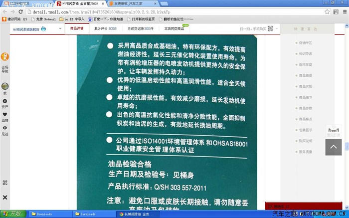 而在700的包装介绍上,却是这样介绍:采用高品质全合成基础油,