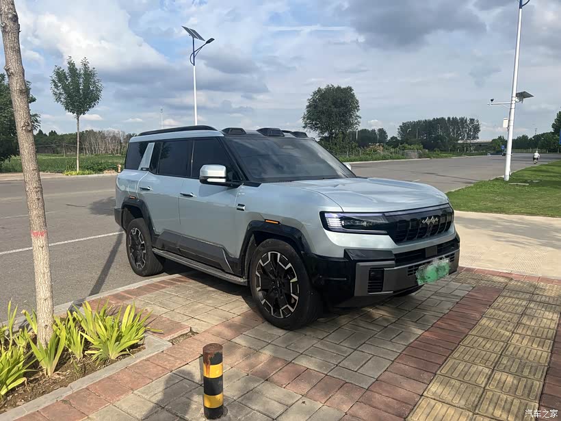 前排人机工程学好评,座椅还是很舒适的,方向盘也很容易找到合适的位置,不过以我的坐姿会挡到仪表上的时速显示,但有hud倒也问题不大。第二排表现好评,两个独立座椅的调节范围还是挺大的,四人出行的话也能获得一个相对宽敞的空间,座椅的舒适性虽然比不了一般大尺寸SUV,但作为一个越野车来说也没什么问题。第三排确实就比较小了,毕竟去掉备胎后实际车也没那么的大,以我175的身高来说如果都迁就一下倒也能坐下,当然跑长途还是算了,第三排打开的情况下后备箱空间也很小了,好在是三排放倒后可以全平,如果不使用第三排的话倒也不影响装载能力。此外后备箱里常规的锚点和电源接口(还有一个220v)都有所配备,考虑到还是比较到位的。