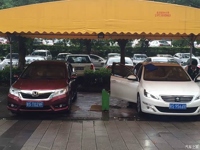又过了一周,来电话了,说周四就可以选牌了,顺利周五提车,擦,好吧,我失眠了,周四胡乱选了一张牌,就坐等周五了,都提前请好假了,中午饭都没吃直奔4S店,。洗白白在等我。不错,亮瞎了。双菊花,帅气,周围停了很多1.2 还有1.8L的,顶配就只有我一辆,这个可以有。好事多磨,中间有点小插曲,终于在下午4点半的时候搞定了, 激活了blue-i手机也下了APP。不错,还可以定位,回去慢慢研究,先走,新车不敢深踩,保持3000转以内,不过超车也是轻松的,2000转轻松100码,到时候过了首保,试一下地板油。回到店里上个蜡,玻璃也上蜡,在洗一次车。哦,我副业和朋友搞了一家汽车美容店,主业我做电子商务的。以后东莞地区的朋友可以来我这消费,报上论坛ID,给优惠哦。废话不多说,上图