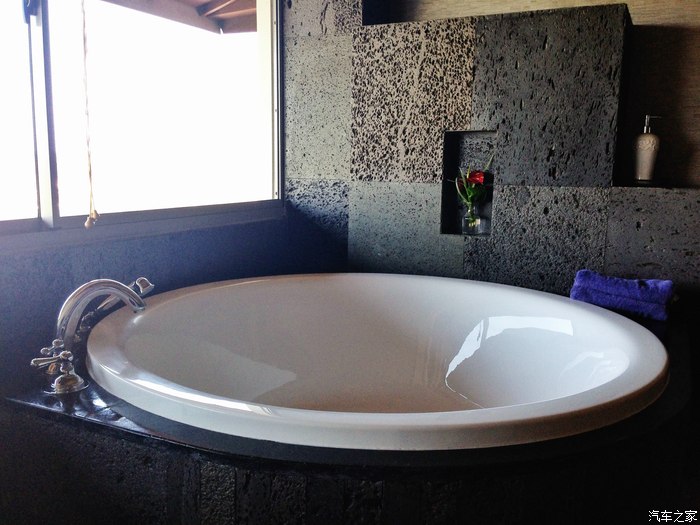 房间里的圆形浴缸。