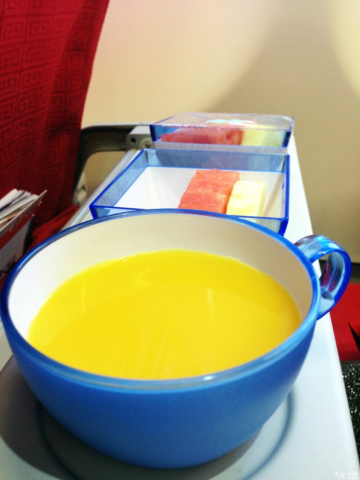 飞机上的水果饮料。主食忘记拍了。等想起来的时候已经成了残羹剩饭