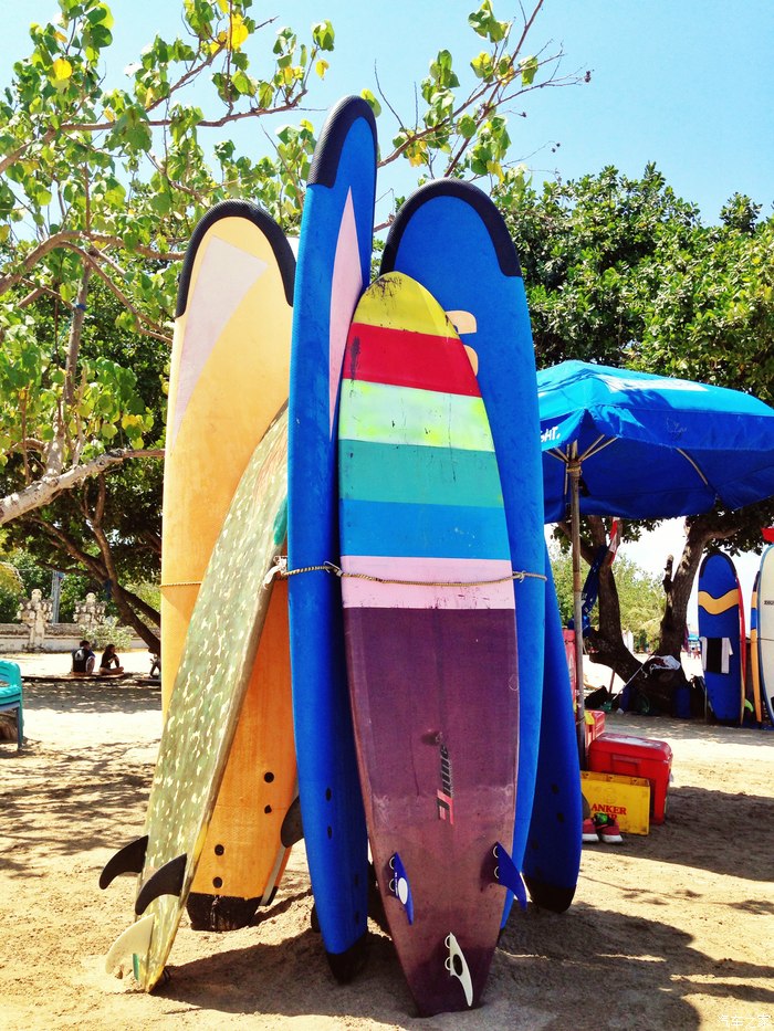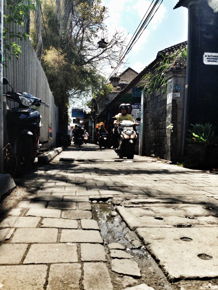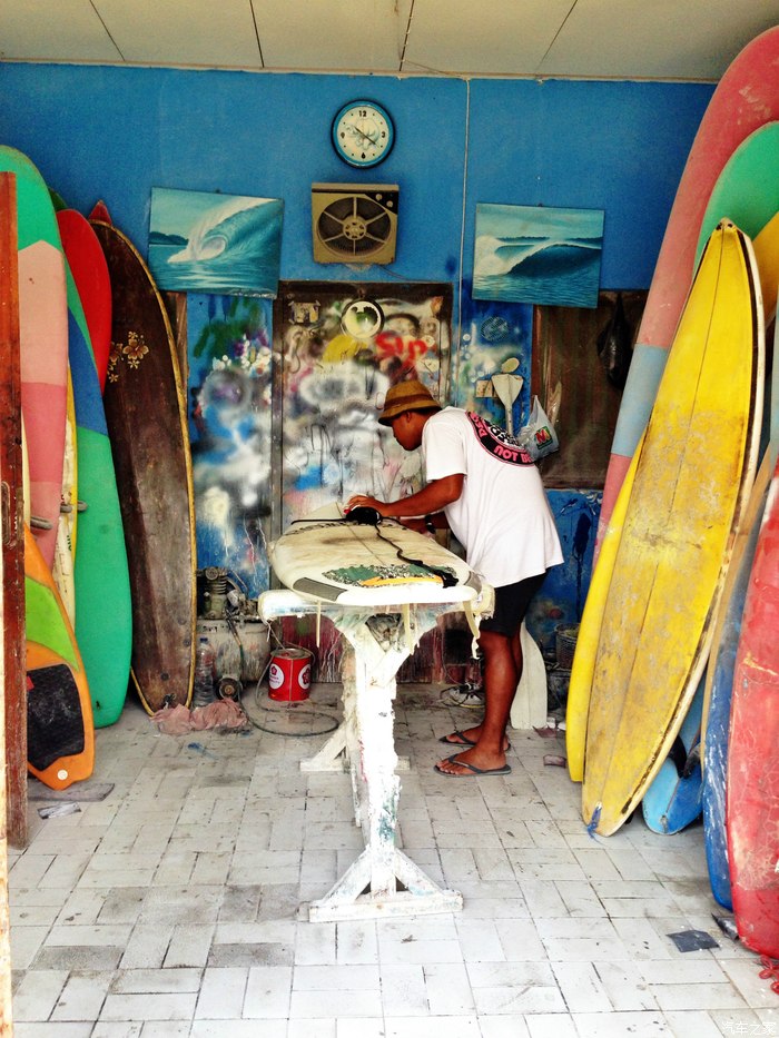 巴厘岛库塔,冲浪者的天堂。街边随处可见冲浪板的现场作坊。街道也非常窄,摩托车巨多。。。