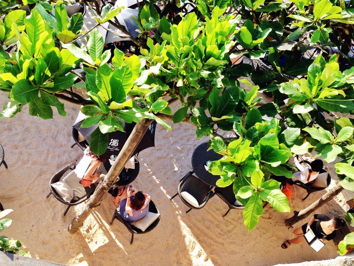 服务生会给每桌客人几把伞,遮挡骄阳。。。都是真心热。。。