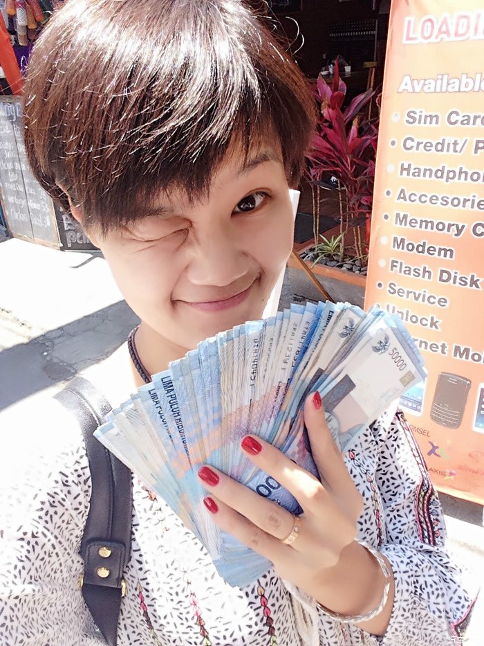 去了当地的两替店换了350美金印尼盾。本来应该有80多张50000面值的印尼盾。因为数额太大的原因。当地老板会趁你不注意偷偷拿走一半。。。我因为是个数学白痴,一边走还一边美滋滋的数,数着数着突然发觉不对。仔细算算竟然少了一半