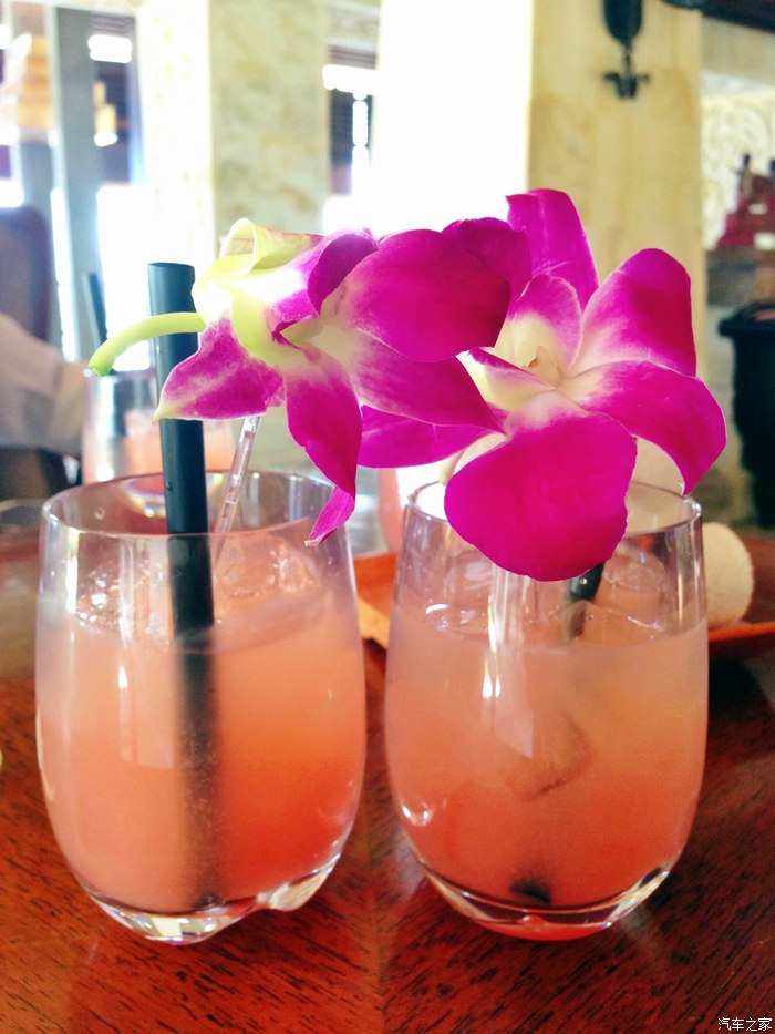 由于还没有到入住的时间,我们只能在大厅等候。服务生给我们每人送了一杯饮料,很好喝。