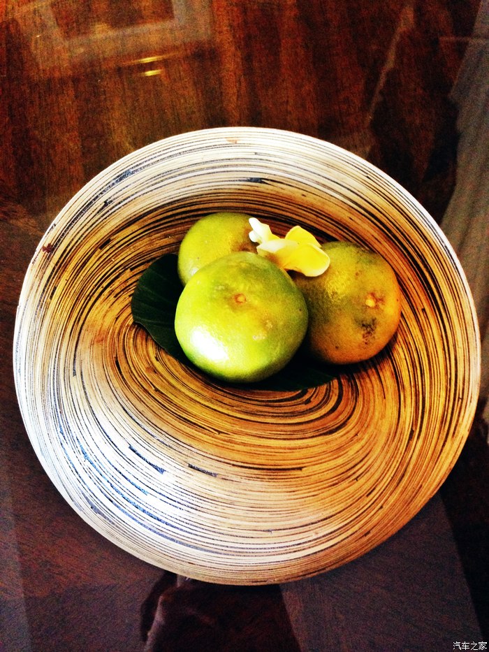 房间赠送的水果。我超级喜欢这个装水果的盘子