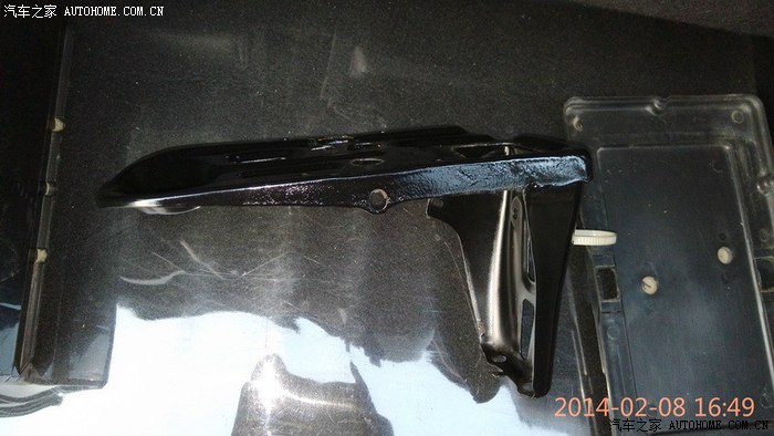 比量尺寸,这里需要割掉,我没有割蓝色的,因为割豁了影响强度,所以把原车的拆下割掉了一块。