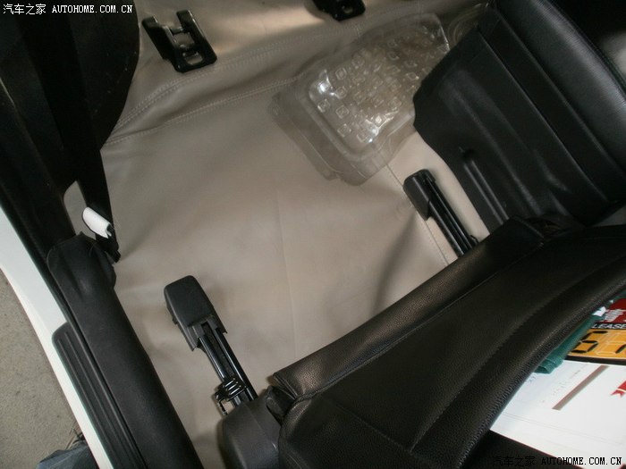 座椅回位,一切OK,没有涂胶规整,压一压就好了。地胶的尺寸很准确,没有裁掉多少,在某宝购买的。
