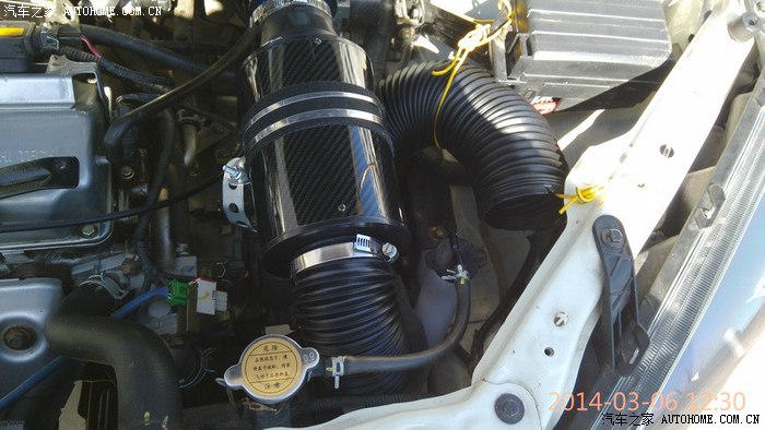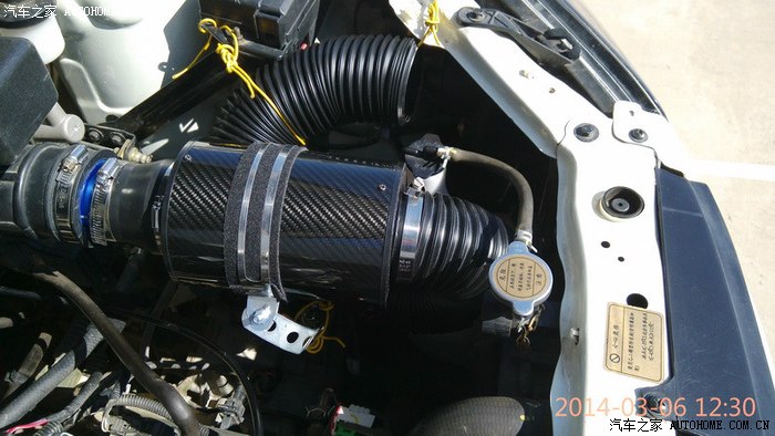 下面说一下效果:首次试验是不安装前进气管的,加油时有一种跑车的声浪(转速在2500转以上时),很好听,动力方面有所提升,油门变轻了(按改前踩油门的力度,转速比改前高),加速也照以前快了,经过一个月的使用,发现油耗高了,后分析所得,更换新风箱后,转速总是在3000转以上,肯定费油,这还不是最主要的,一个月后我把风箱拆掉,发现后进气管内有轻微的灰尘,这说明后换的风箱过滤不好,这还得了,立马换下,又过了一个多月,心痒痒,又把风箱换上了,这次把前进气管按上了,就是上图绑电线的那个,进气声与不装有一些不同,浑厚了(感觉),其它感受都差不多,经过一个多月又换掉了,原因同上,还有一个更重要的是,有一次车里拉着两个人加我三,开车到我们这里的山上玩,在上山比较陡的地方,用原车进气二档可以上去(以前总上),换了风箱后二档上不动,一档动力也不足,差点没上去,后期回想,我当时开了空调,应该有影响,之后也没有在试,现在用的是原车进气。总结来说,这个进气偶尔玩玩还行,长时间使用这种过滤效果发动机肯定挂。