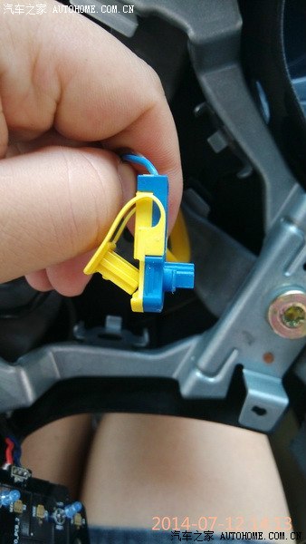 3.接ON控制线,所有的接线我都是焊接的,我的是一键启动,这个插头不用,但是电在这里取。