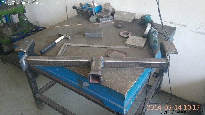 安装拖车杆有几个原因,1)后期可以安装自行车架 2)以后宽裕了可以买一辆拖拽式小房车,开着小飞,拖着房车去旅游 3)最主要的是防止追尾,现在路上新手太多,车也太多,老婆孩子每天都坐后座,这要是有那位给我追了,后果很严重呀。拖车杆是自己量尺寸、设计、制作的,纯手工,包括喷漆。下面上图: