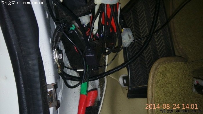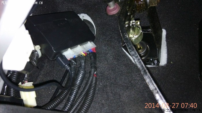 18.电脑的位置,本来可以与原车报警器控制盒放在一起,后来感觉散热不好,就单独放在离合右上,与主线束绑在一起