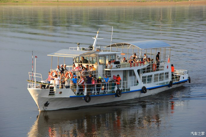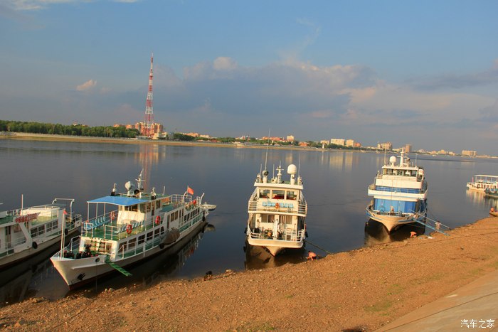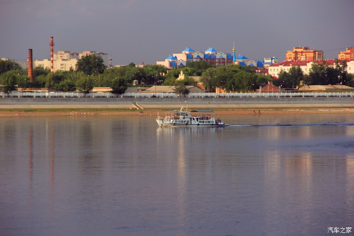 游船靠近对岸行驶,以便游客近距离观看欣赏俄罗斯。