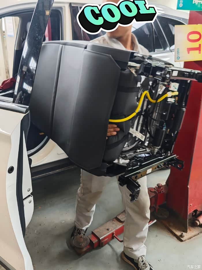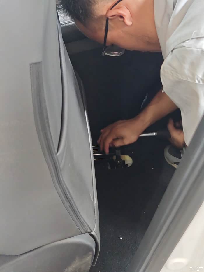 确认好质保换件之后,师傅就开始拆卸座椅更换滑轨了,整个座椅拆下来更换。
