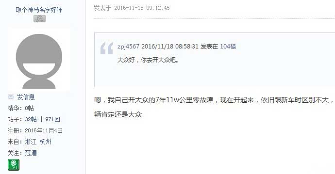 我还真不信,有任何一个品牌的车能开7年11万公里,0故障。包括大众!