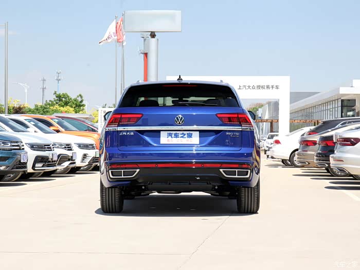 侧面部分,途昂X采用了溜背式设计。尾部保险杠改为哑光仿铝质感饰板,左右双出排气设计