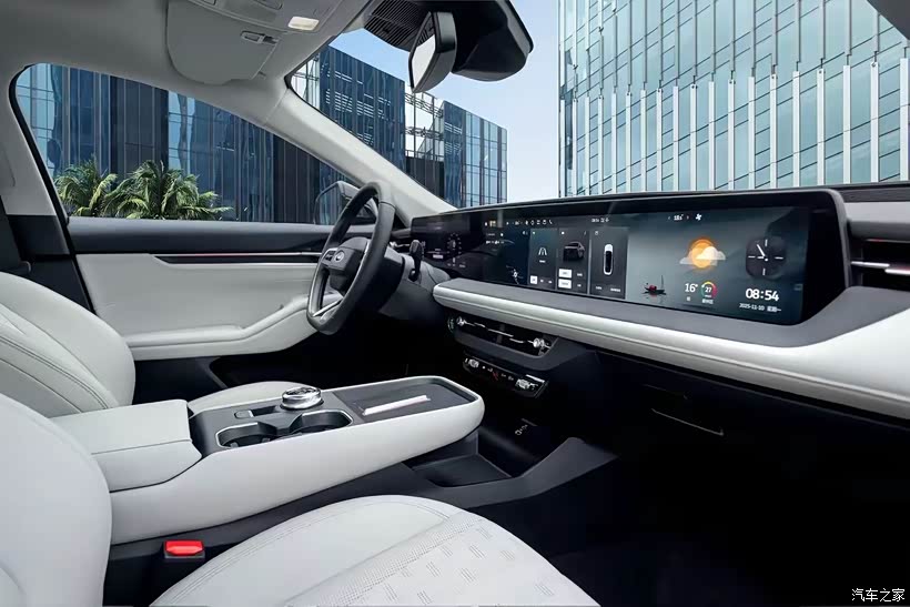 内饰基本延续现款车型设计,保留了中控台上方不规则的设计元素,配备贯穿式27英寸4K大屏和12.3英寸液晶仪表,提供座椅通风加热、50W无线快充等功能。