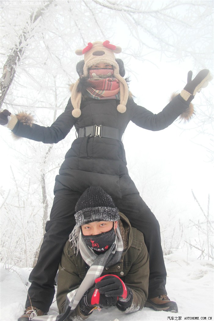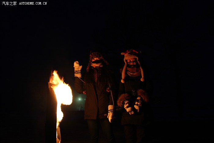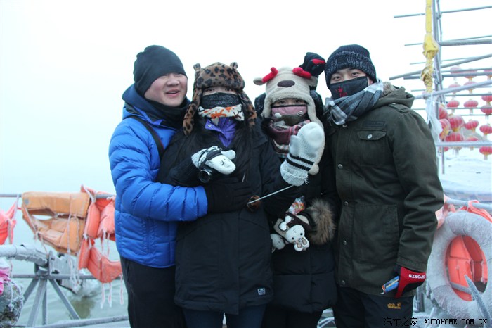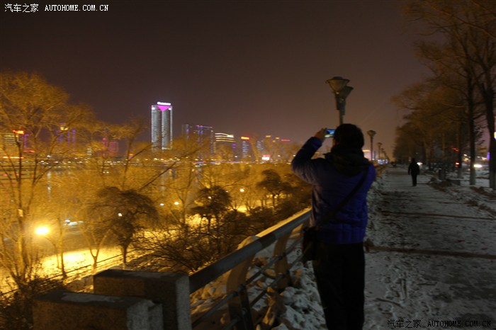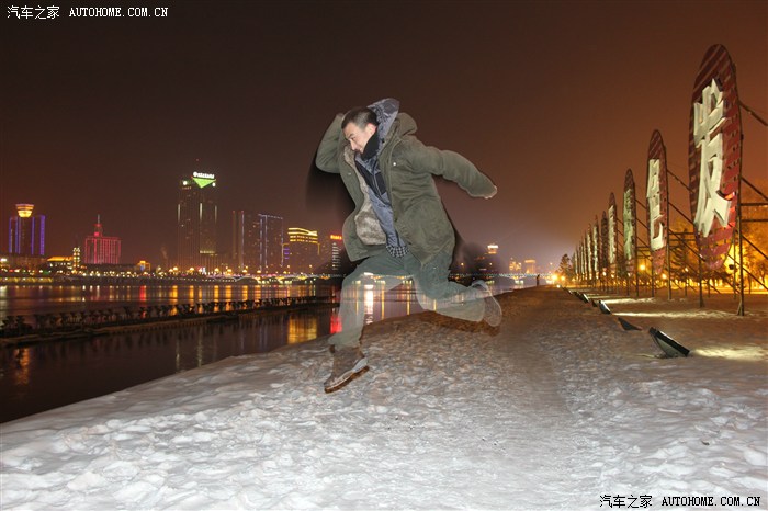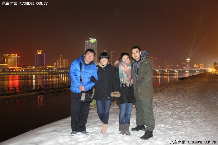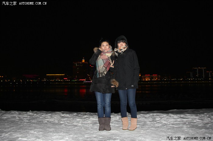 算了 换手动 不然大家都冻死了 先给两位老大来一个! 开了闪光 对岸景色就看不见了~~~