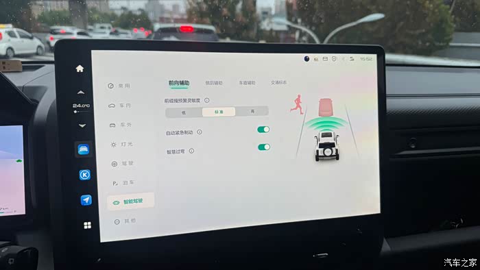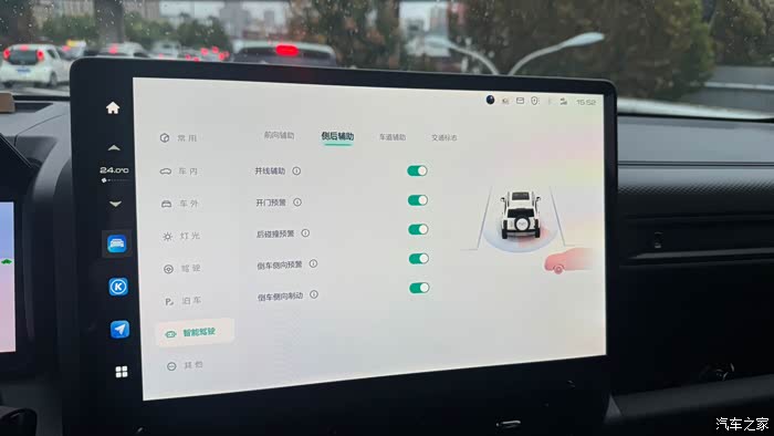 倒车时能识别后方障碍物进行刹车,智能驾驶里的,前后侧向辅助全部打开,对于鬼探头还有盲区倒车的时候,起到很大作用,还有交通标识 根据区域限速 都打开,能有效的提醒驾驶人是否超速,最后这个车道辅助不建议打开,因为它会跟你抢方向盘。