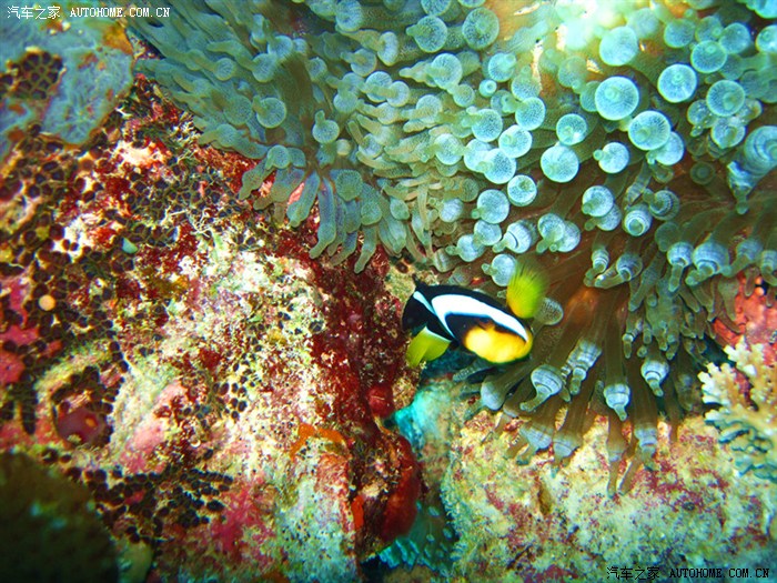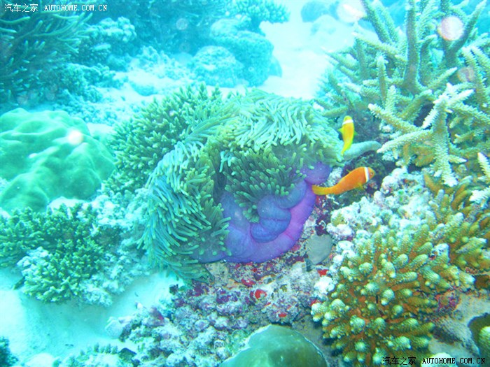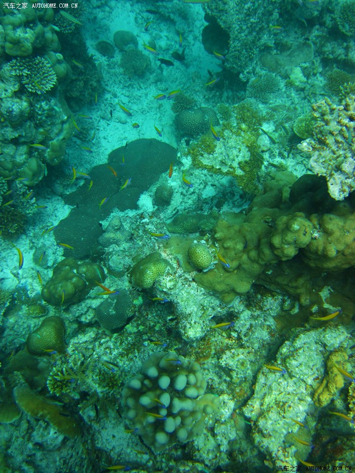 说到麻袋。。。大家肯定都想着浮潜吧。。。其实我也是。。在淘宝上买了潜水服。。租了各种浮潜用具。。水下相机。。。结果。。深海浮潜看海豚的时候。。我就英勇的吐了。。。等到了深海领域该浮潜的时候。。我全副武装下水待了不到十分钟就嚎叫着让小黑救我上船了。。。真心不敢啊。。。我对水的恐惧可能是与生俱来。。趴在船顶围着大毛巾。。我。。竟然睡着了。。。这100多美金可花的太冤枉了。。。奉劝想深海浮浅的朋友们。。。如果你不会游泳又没有浮潜经验。。那还是不要打肿脸充胖子了。。但是!!另外那对儿。。竟然还去深潜了!!于是我们的水下相机还是留下了美好的景象。。。原谅我把人家用我们的相机拍的照片发上来吧。。哈哈~~